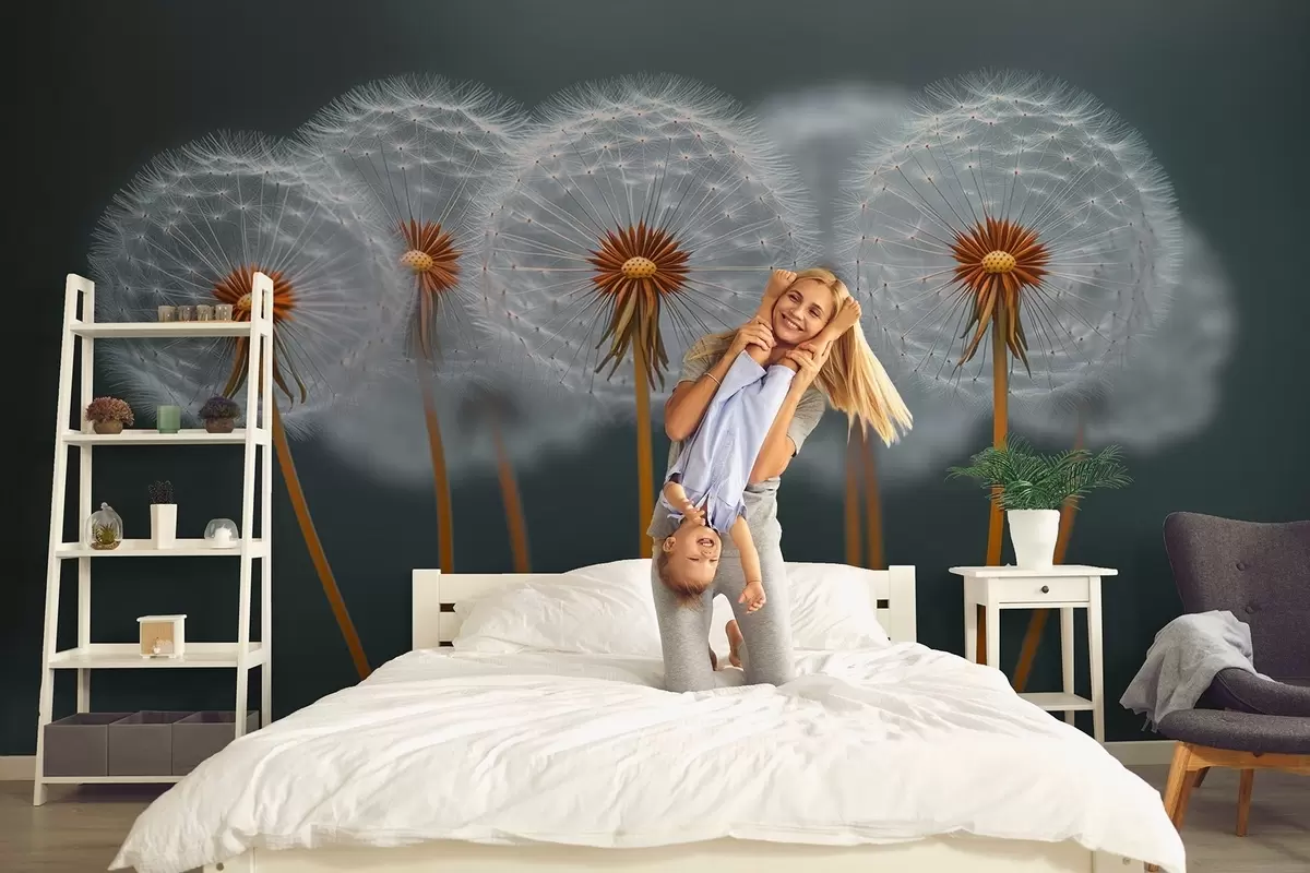 Airy dandelions against a dark natural background - Wall mural (No. w08498)