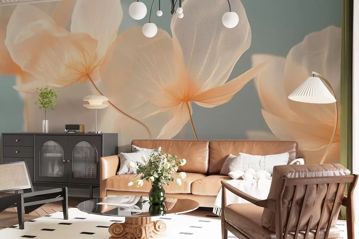 Lotus petals, a delicate composition with a blue background - Wall mural (No. w08500)