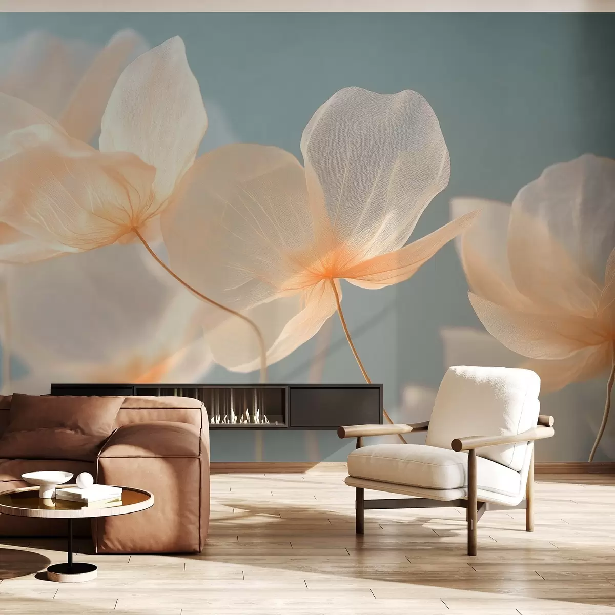 Lotus petals, a delicate composition with a blue background - Wall mural (No. w08500)