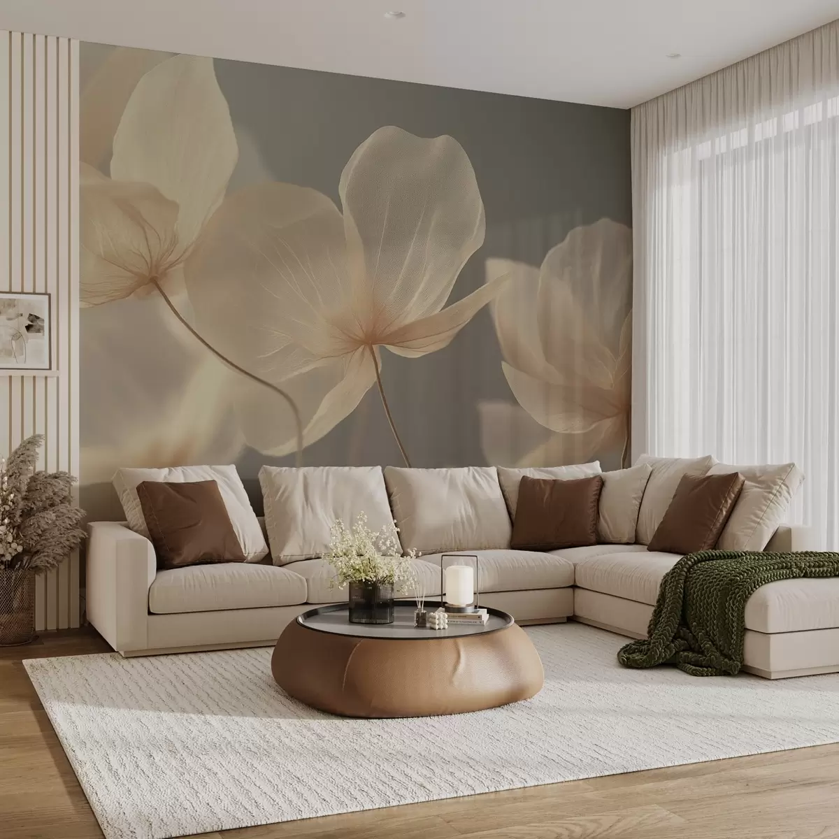 Lotus petals, a delicate composition with a gray background - Wall mural (No. w08500v2)