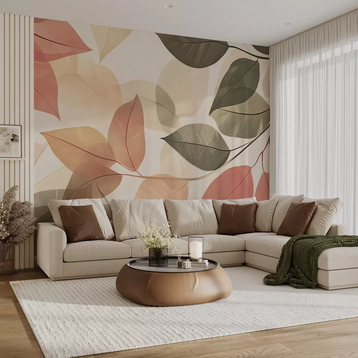 Branches of leaves in red and green tones - Wall mural (No. w08502)