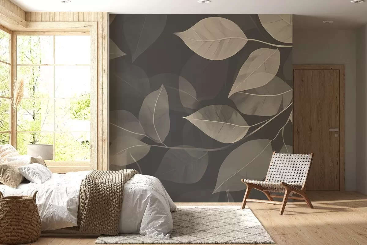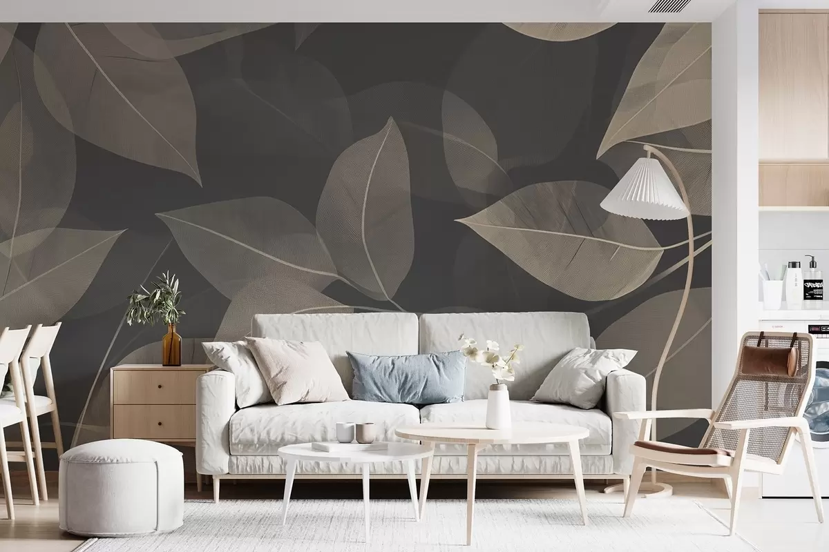 Branches of leaves in blue and gray tones - Wall mural (No. w08502v1)