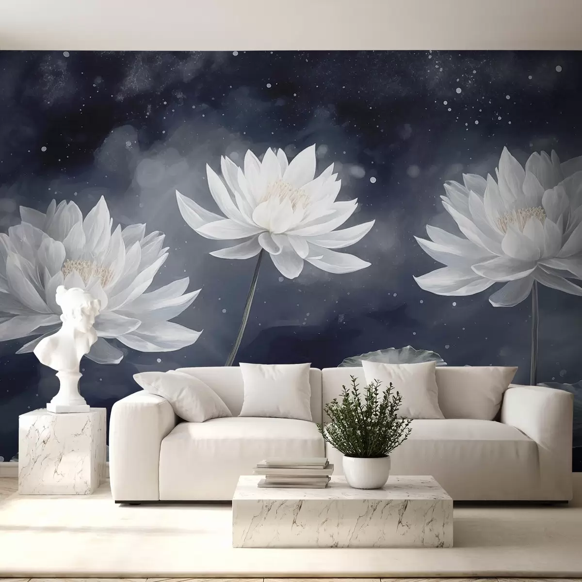 Three lotus flowers on a dark background - Wall mural (No. w08506)