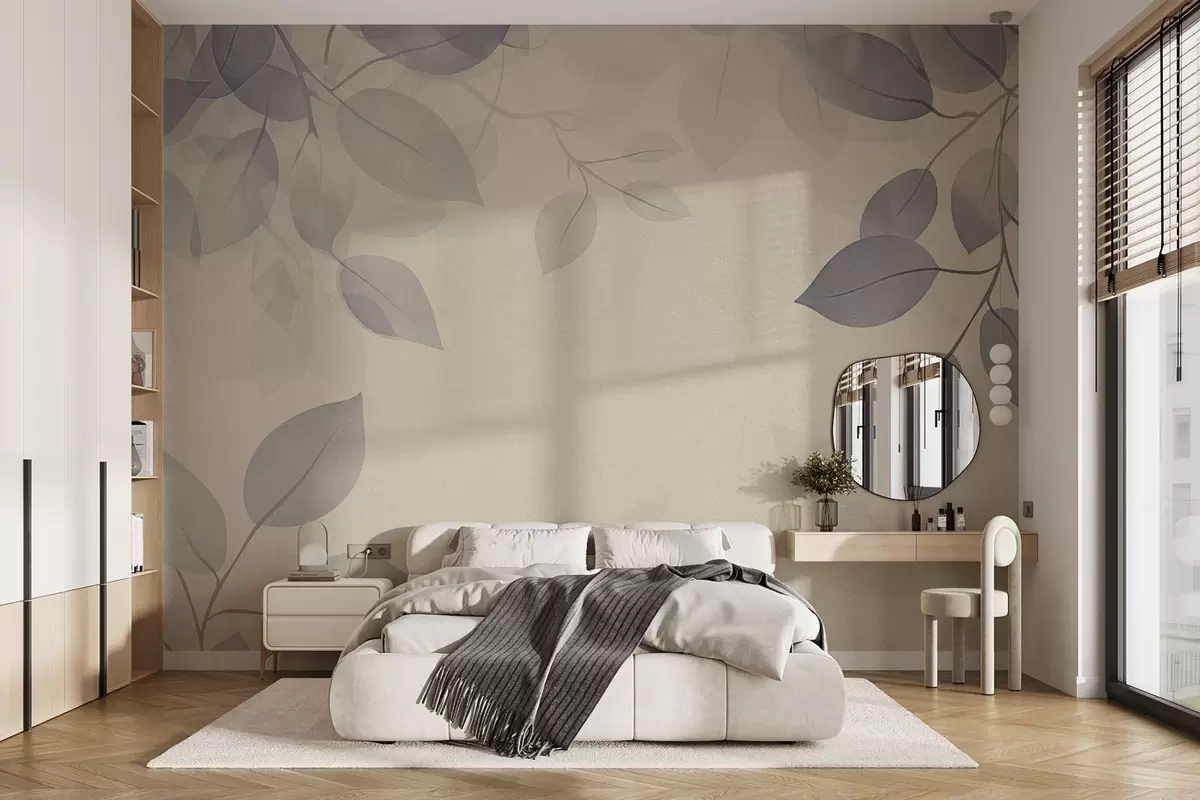Hanging branches with leaves in blue tones - Wall mural (No. w08551)