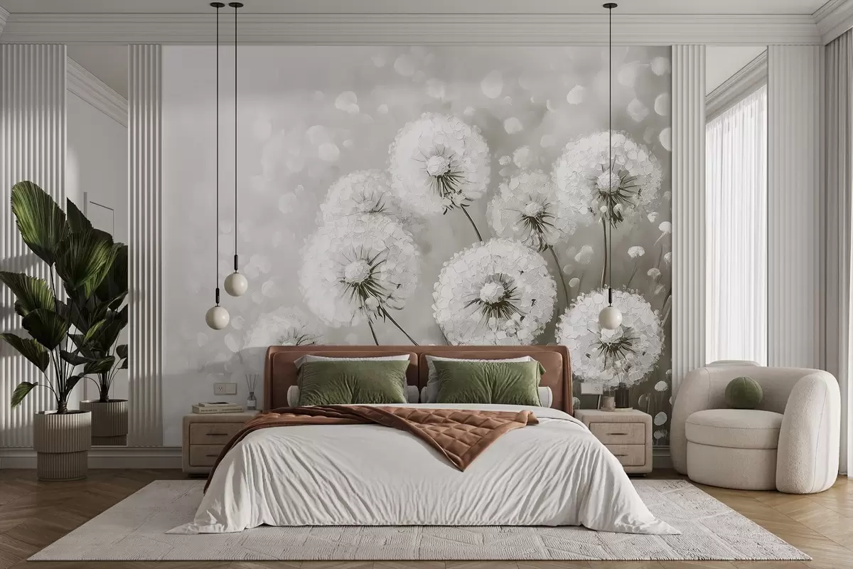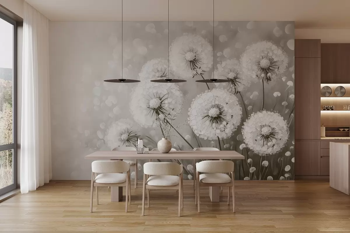 Air dandelions on a monochrome background - Wall mural (No. w08594)