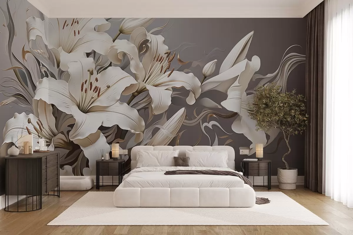 Sophisticated white lilies in pastel tones - Wall mural (No. w08633v1)