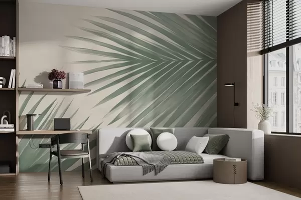 Green abstract palm leaves - Wall mural (No. w08653)