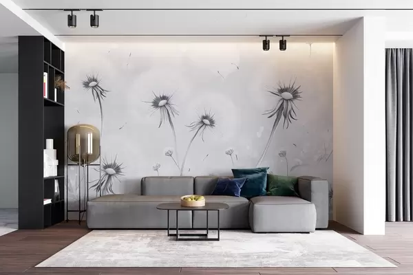 Elegant dandelions and wildflowers in painting style in blue tones - Wall mural (No. w08657v2)