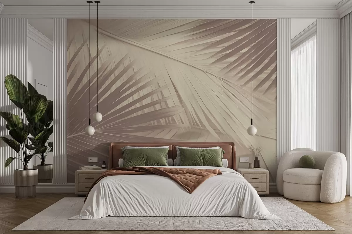Abstract palm leaves in soft shades - Wall mural (No. w08677)