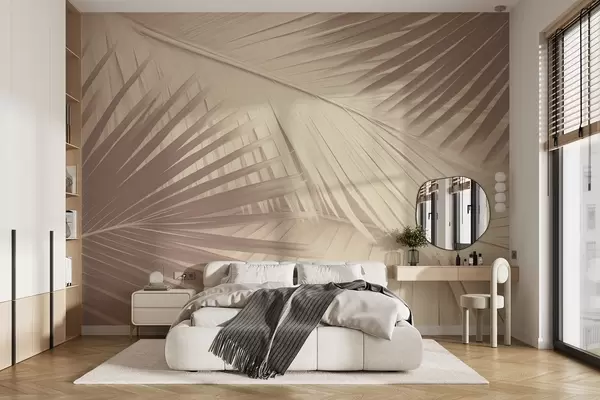 Abstract palm leaves in soft shades - Wall mural (No. w08677)