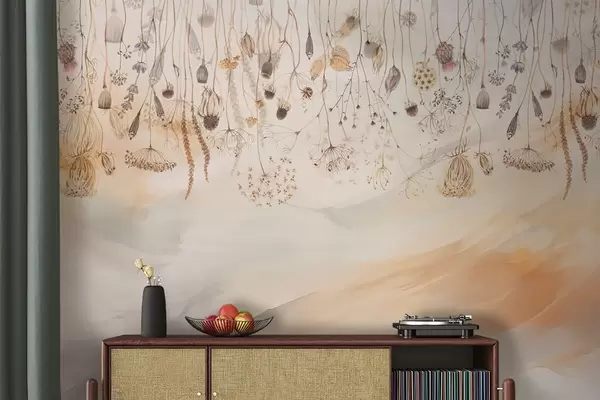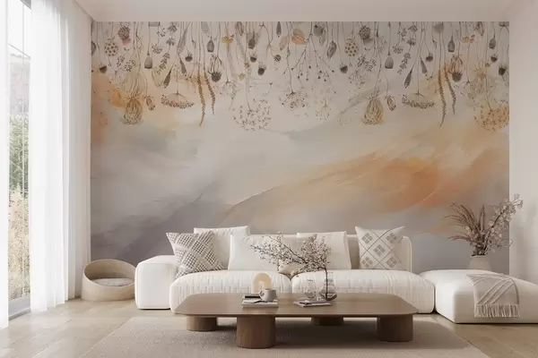 Wildflowers in watercolor style in pastel tones on a brushstroke background - Wall mural (No. w08681)