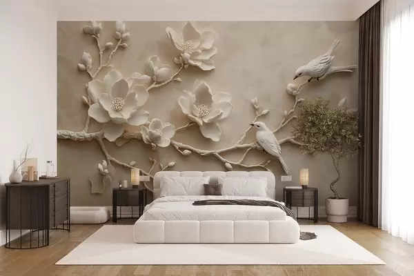 wall murals 3D magnolia branches with birds on them w08690