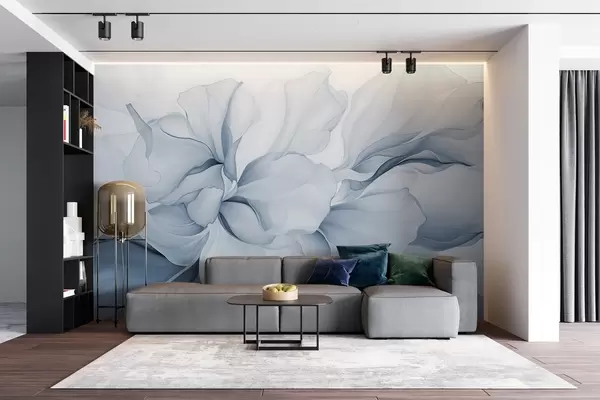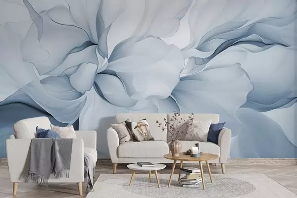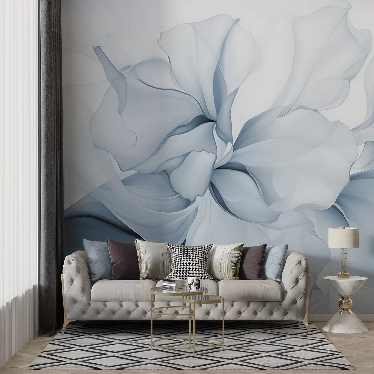 Flowing abstract floral petals translucent and layered shapes in pastel colors, in blue shades - Wall mural (No. w08701v2)