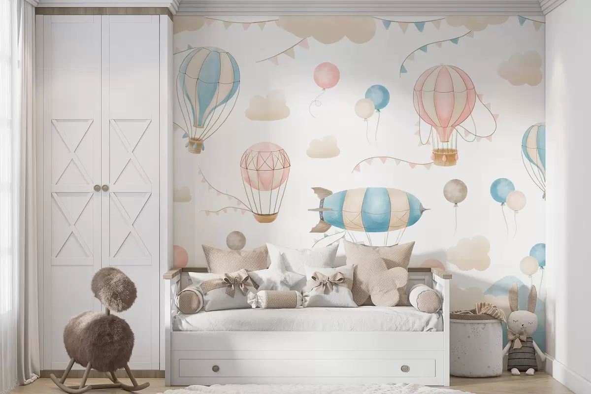 Children's watercolor design with balloons - Wall mural (No. w08765)