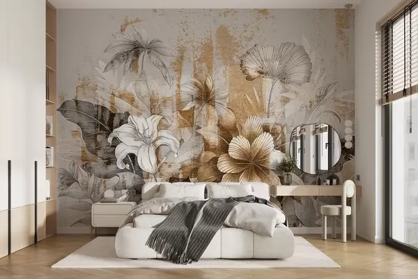 Vintage design with exotic flowers and plants - Wall mural (No. w08767)