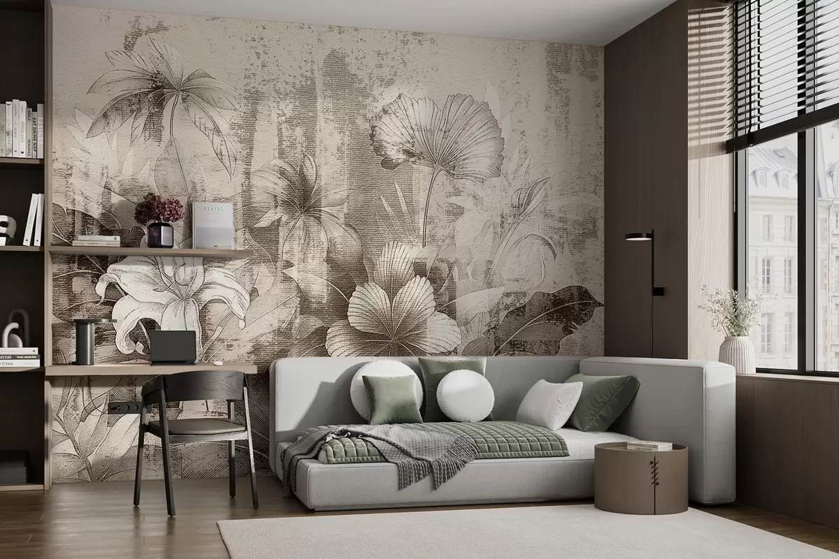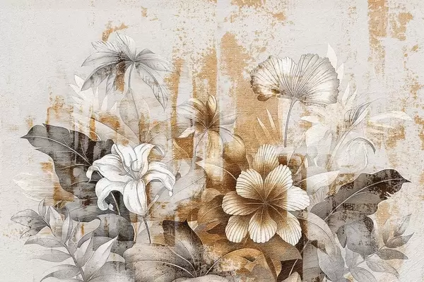Vintage design with exotic flowers and plants - Wall mural (No. w08767v2)