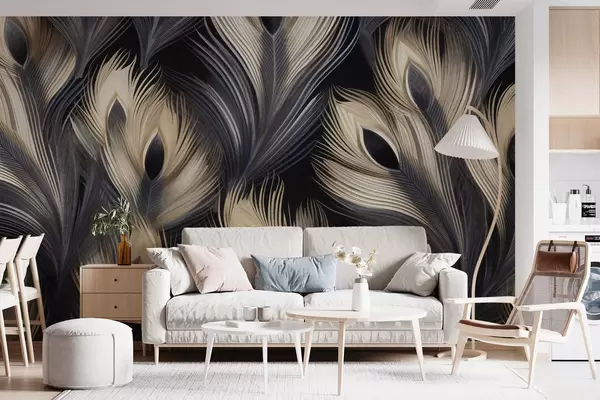 Abstract background of peacock feathers - Wall mural (No. w08799)
