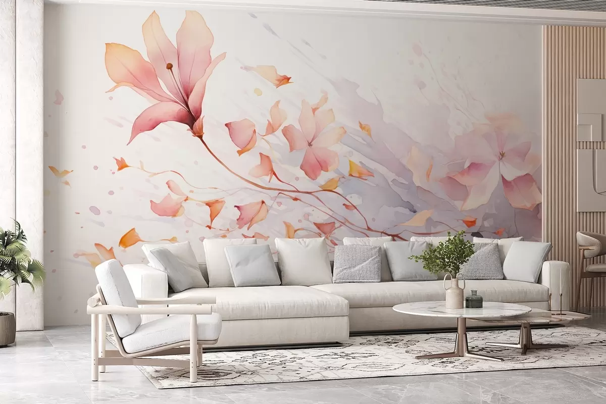 A flower with falling petals fluttering in the wind in a watercolor style - Wall mural (No. w08821)
