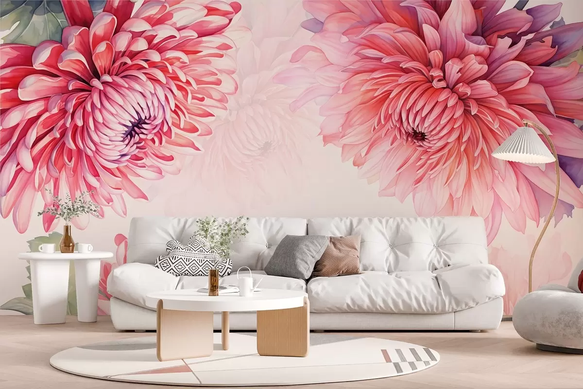 Chrysanthemum flowers in a watercolor style in a bright raspberry color - Wall mural (No. w08855)