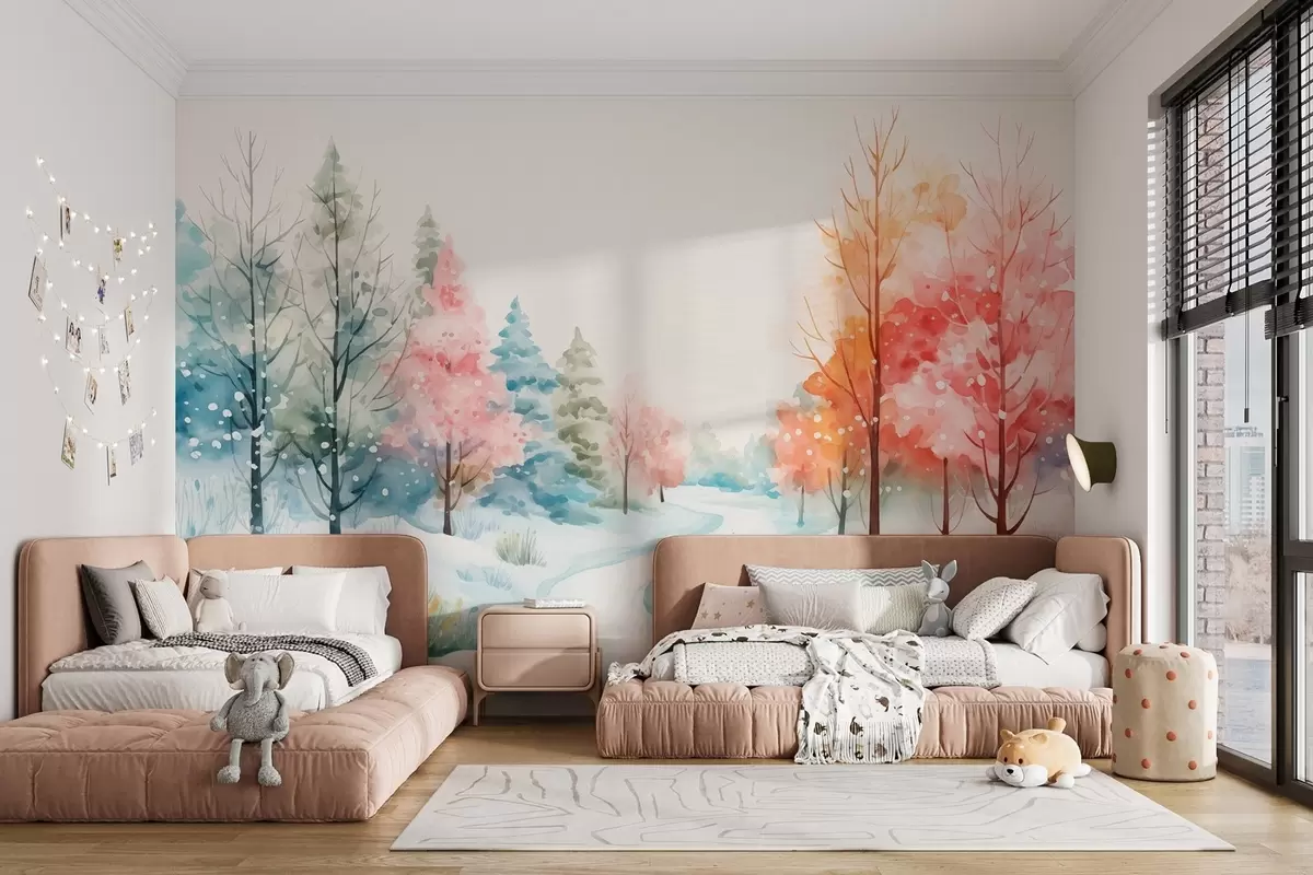 A vibrant winter forest in a watercolor style - Wall mural (No. w08856)