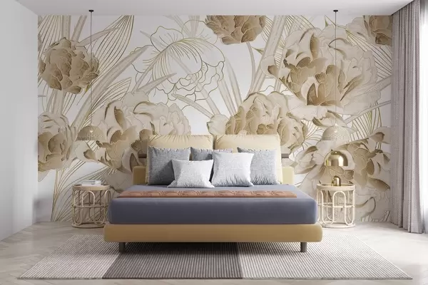 Beige peonies with leaves on a white background, floral design, botanical illustration - Wall mural (No. w08897)