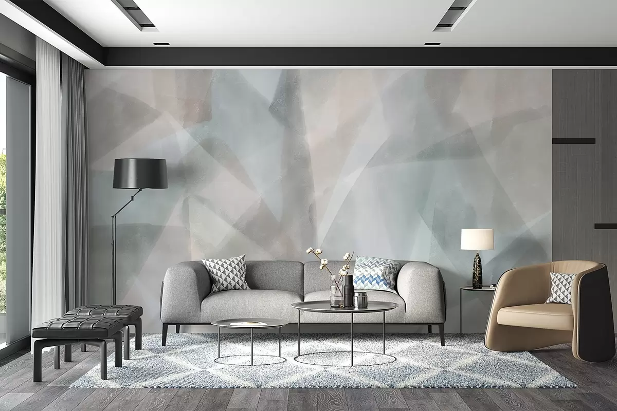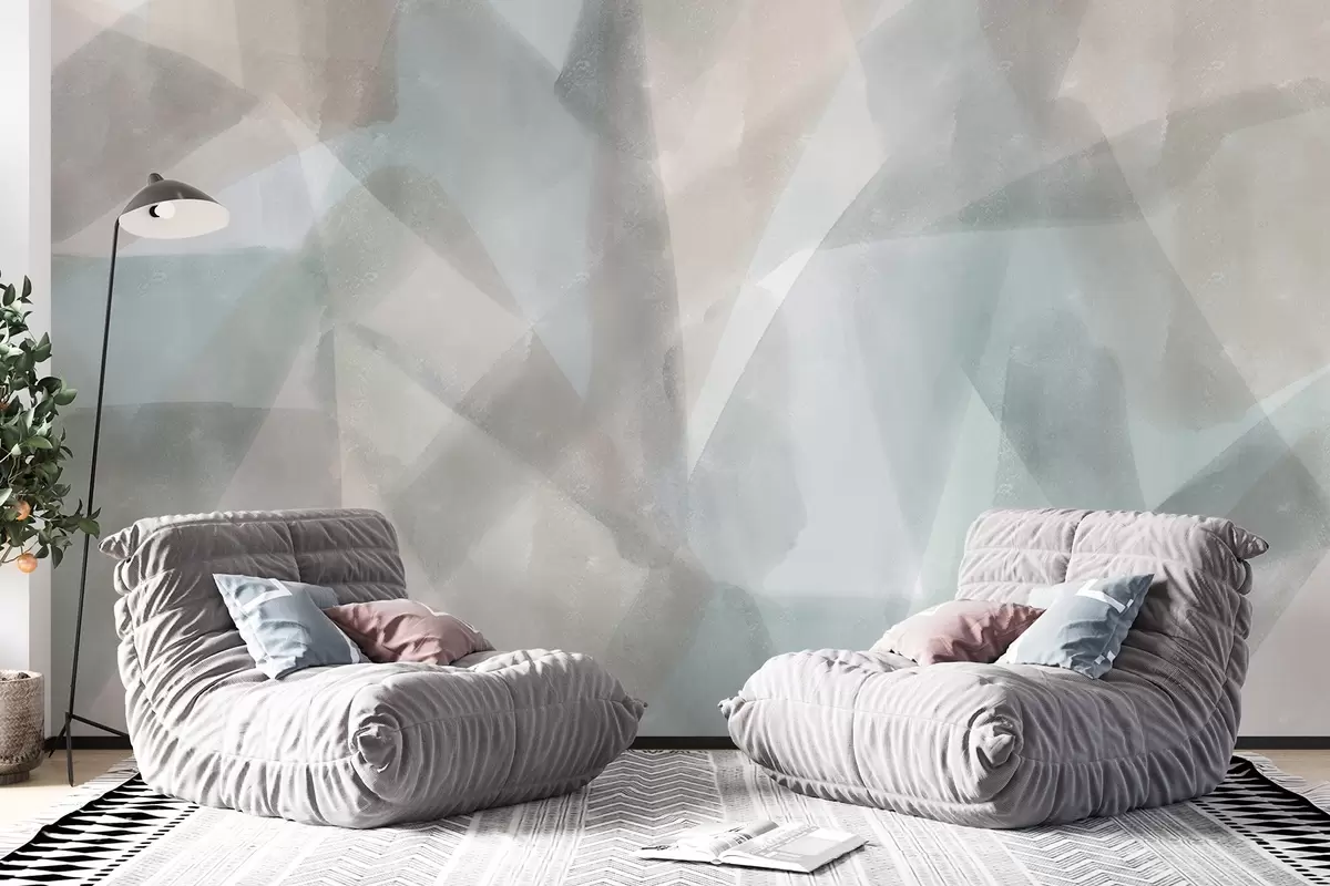 Abstract geometric shapes with a watercolor effect, soft pastel colors - Wall mural (No. w08919)