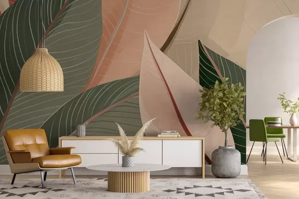 Close-up of leaves in olive green and pink-cream colors - Wall mural (No. w08944)
