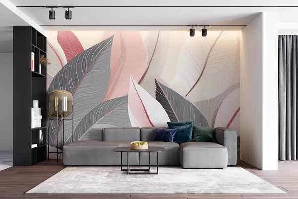 Close-up of leaves in gray and pink tones - Wall mural (No. w08944v1)