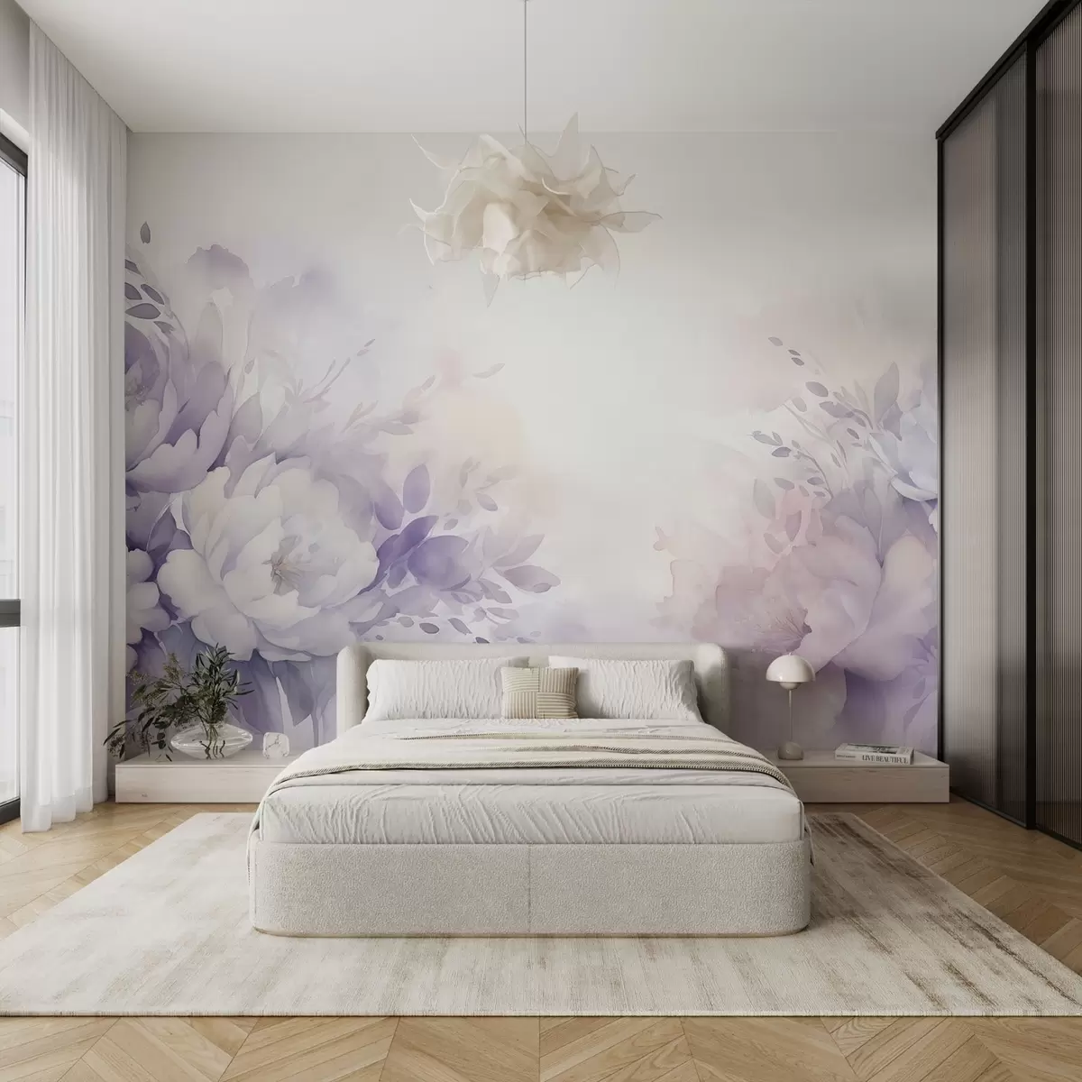 Large delicate lilac flowers, imitation of watercolor - Wall mural (No. w08946)