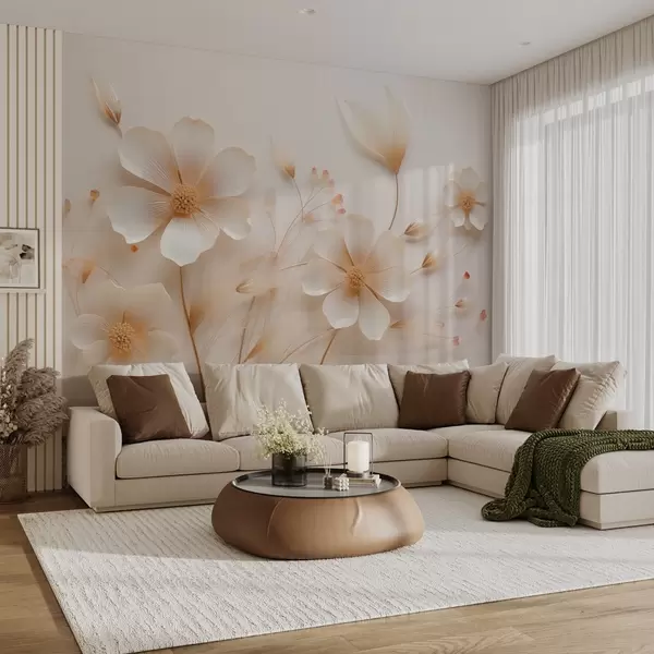 Light beige delicate wildflowers - Wall mural (No. w08953)