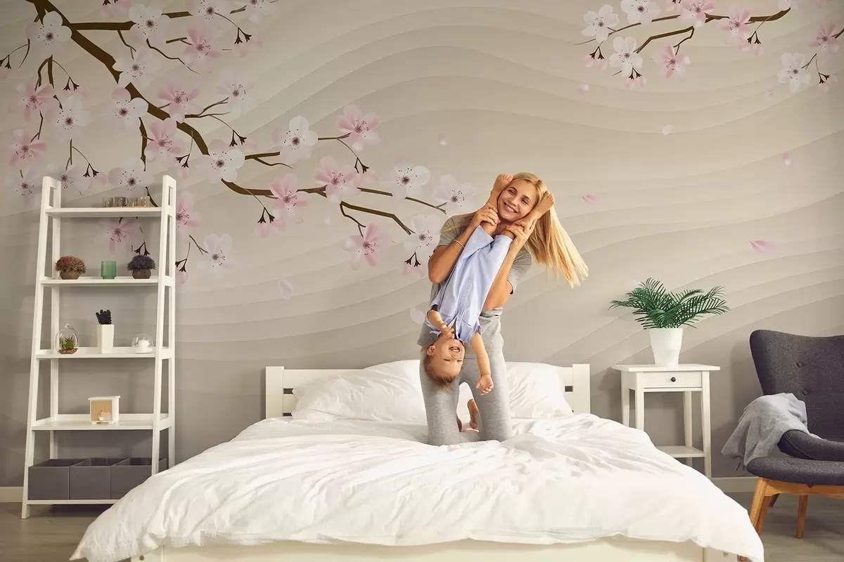 Sakura branches on a wavy sandy background - Wall mural (No. w08959)