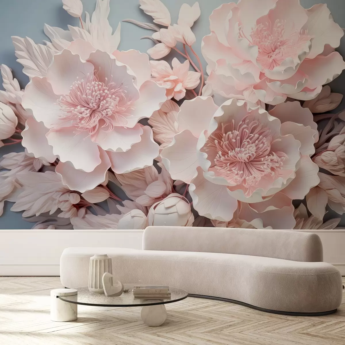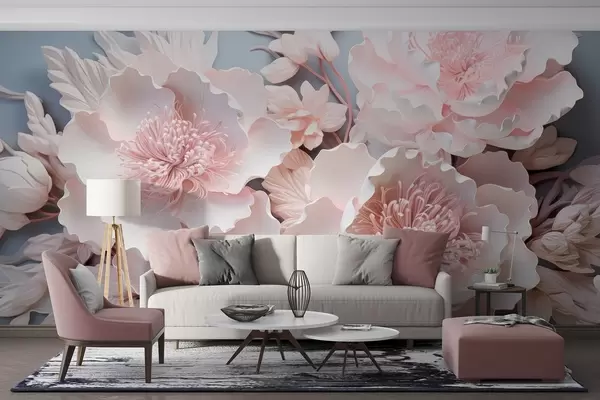 Voluminous pink flowers in delicate shades - Wall mural (No. w08988)
