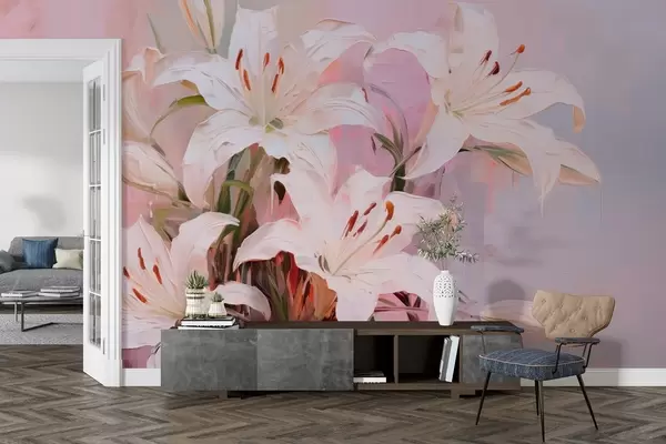 Lilies in vibrant colors in painting style - Wall mural (No. w08996)