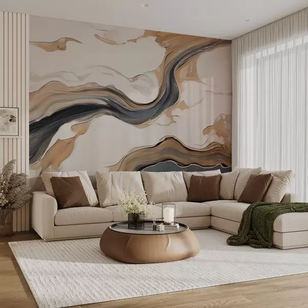 Brown-gray streaks in the form of waves - Wall mural (No. w09001)