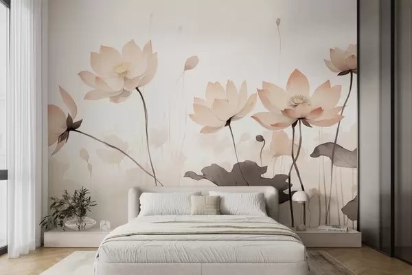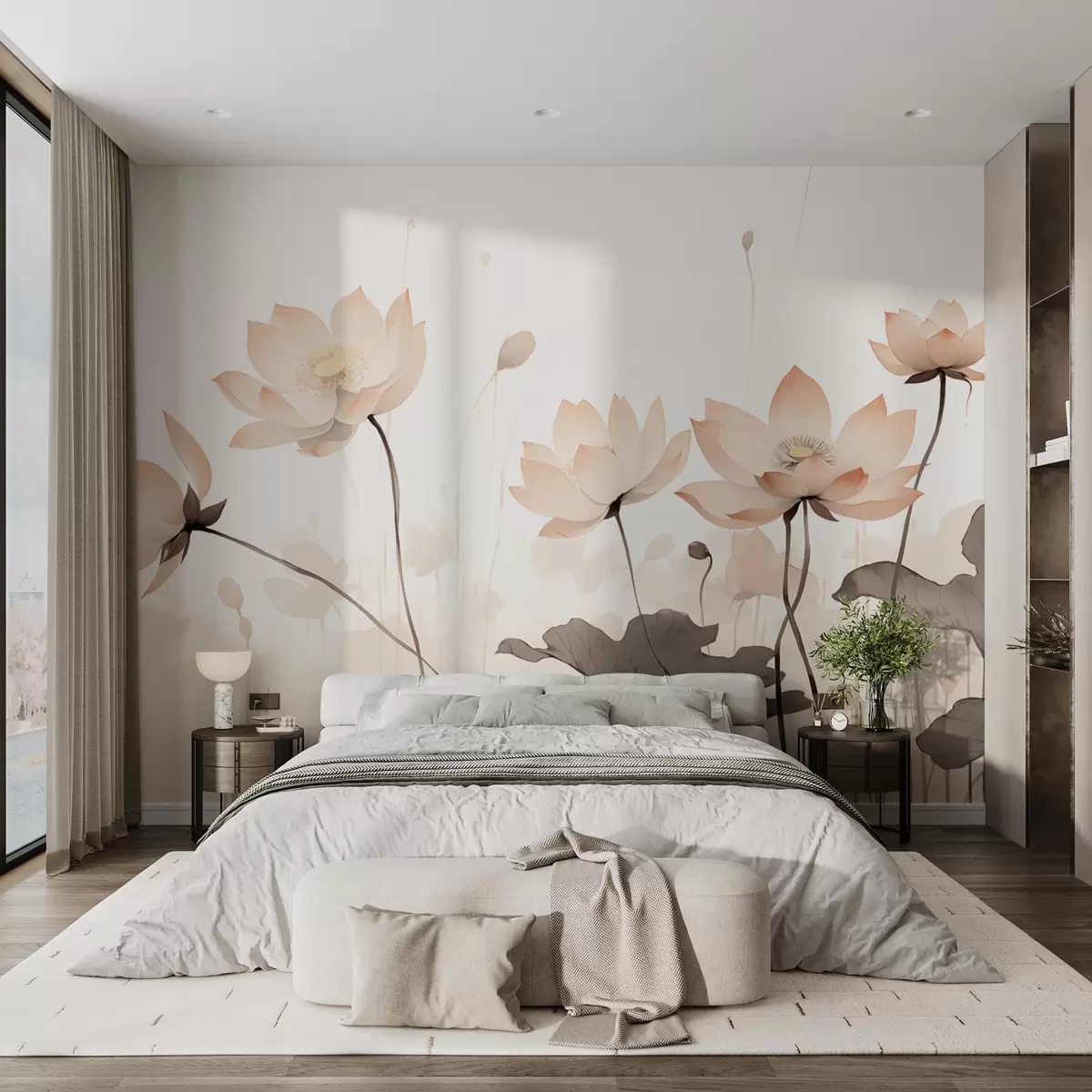 Water lilies in delicate light tones in watercolor style - Wall mural (No. w09035)
