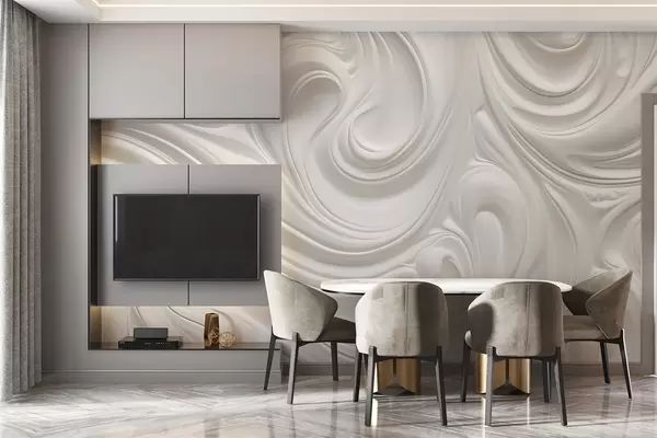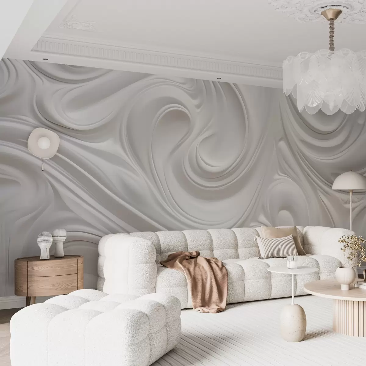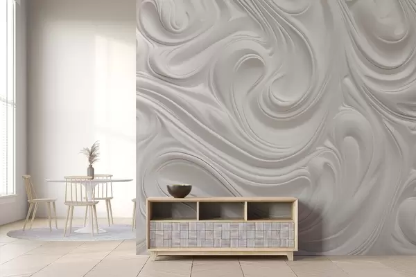 White abstract modern art with fluid swirls and waves, smooth texture, elegant design, minimalist aesthetic - Wall mural (No. w09059)