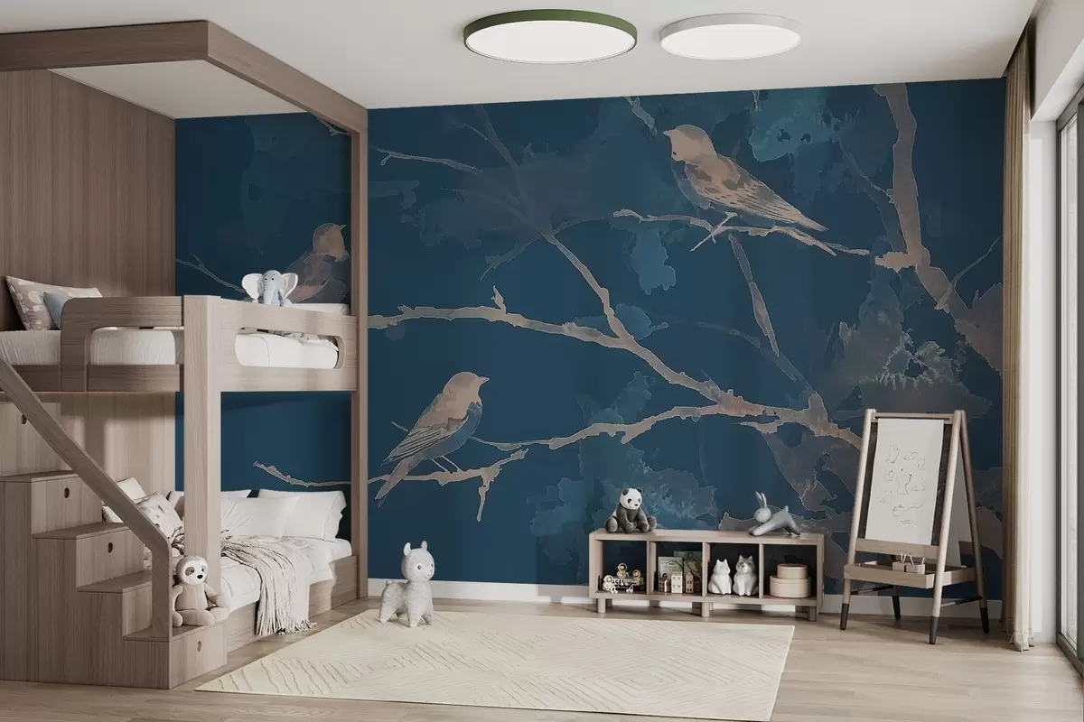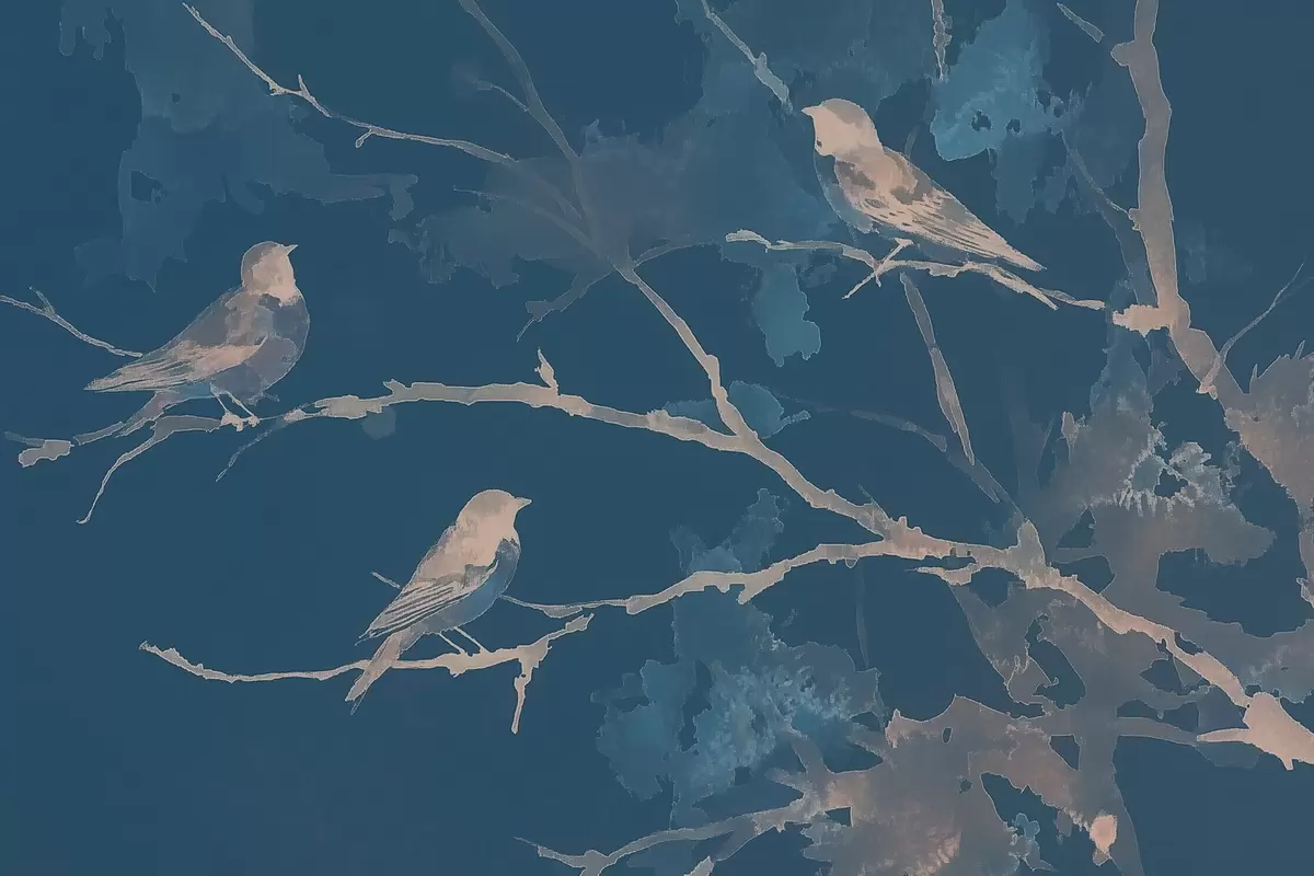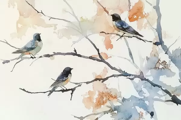 Birds on tree branches in watercolor style - Wall mural (No. w09064v1)