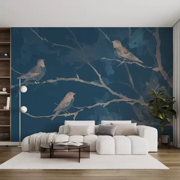 Birds on tree branches in watercolor style - Wall mural (No. w09064v1)