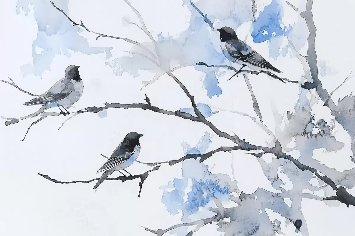 Birds on tree branches in watercolor style - Wall mural (No. w09064v4)