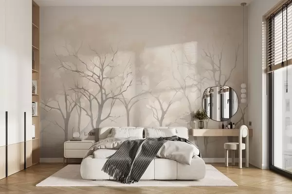 Monochrome vintage trees in fog - Wall mural (No. w09065)