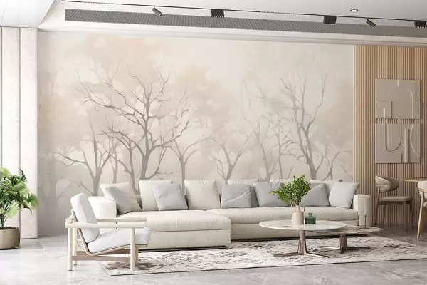 Monochrome vintage trees in fog - Wall mural (No. w09065)