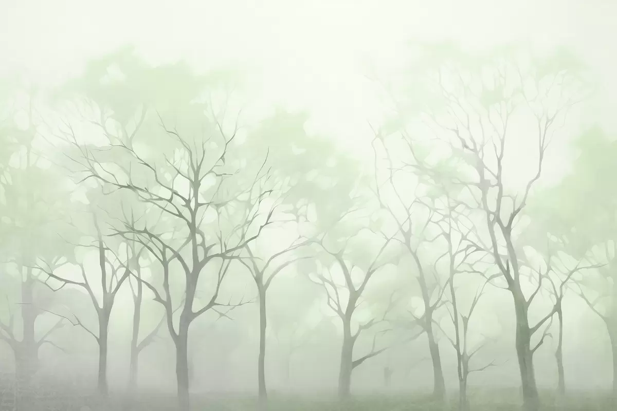 Monochrome vintage trees in fog - Wall mural (No. w09065v1)