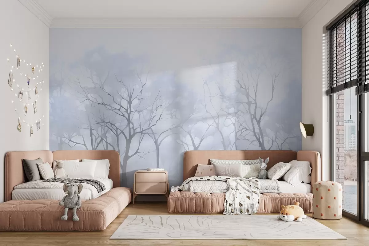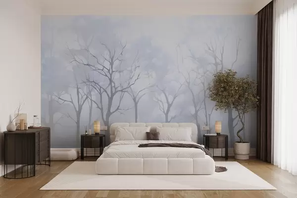 Monochrome vintage trees in fog - Wall mural (No. w09065v2)