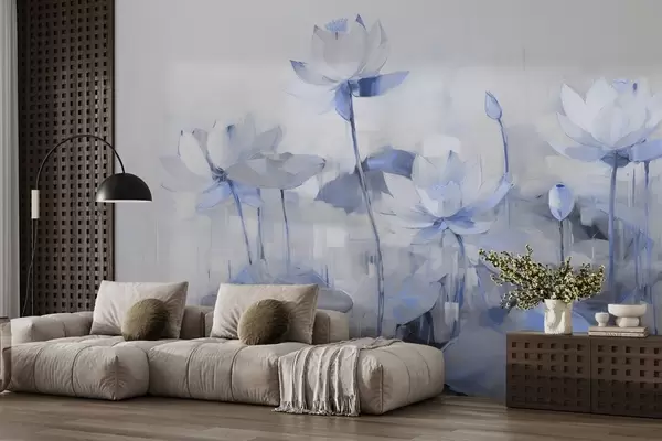 Delicate lotus flowers painted with acrylic - Wall mural (No. w09067v1)