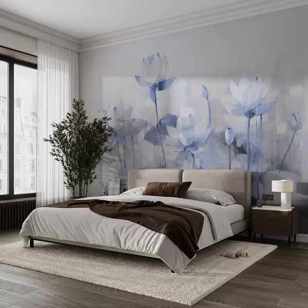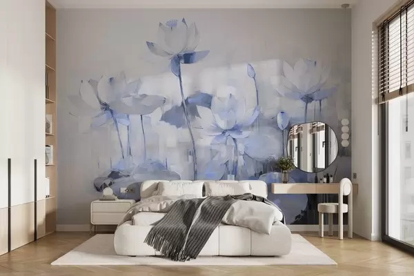 Delicate lotus flowers painted with acrylic - Wall mural (No. w09067v1)