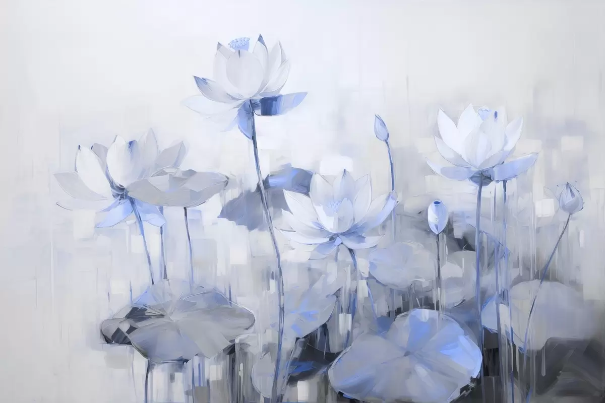 Delicate lotus flowers painted with acrylic - Wall mural (No. w09067v1)