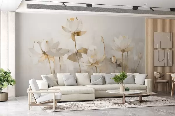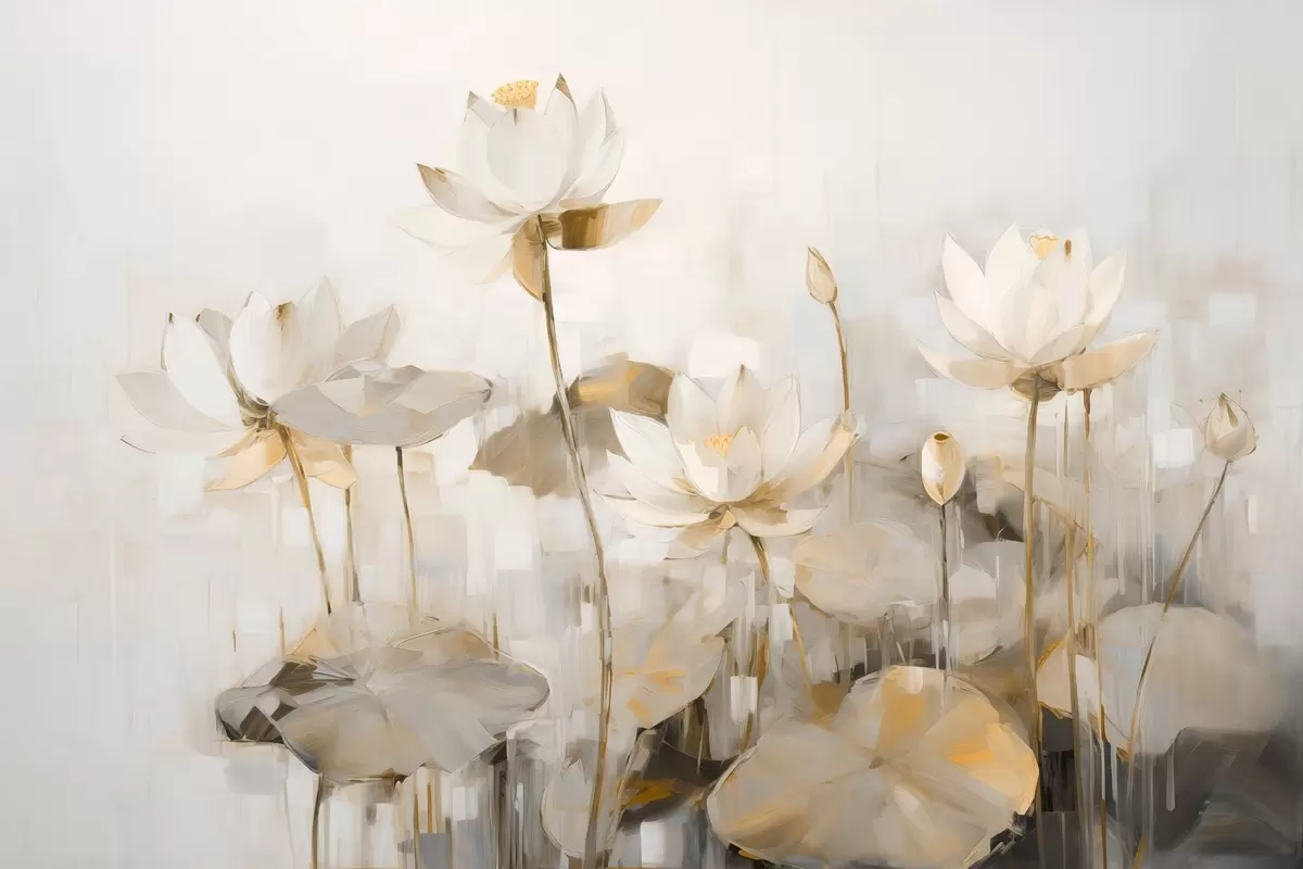 Delicate lotus flowers painted with acrylic - Wall mural (No. w09067v2)