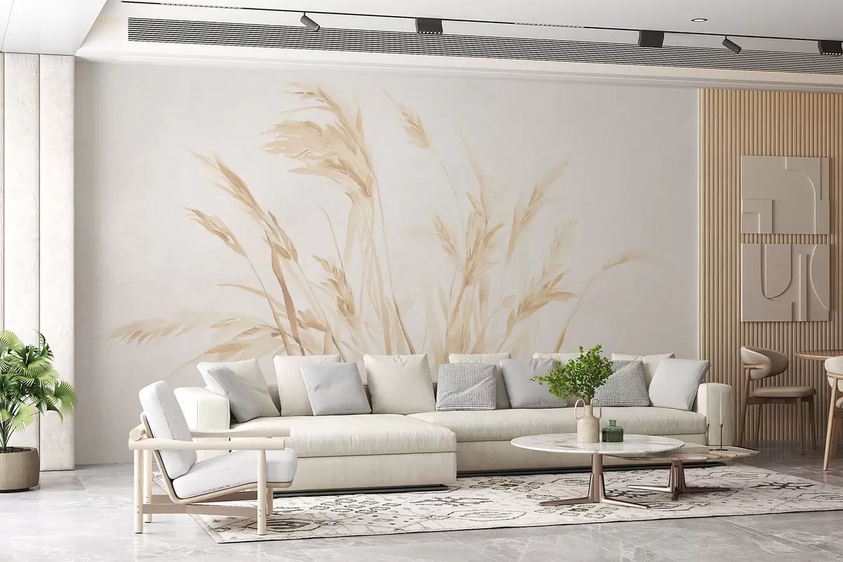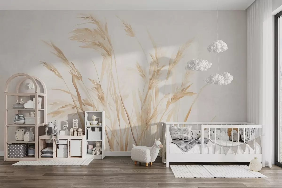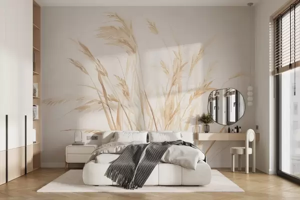 Monochrome vintage wheat ears - Wall mural (No. w09068)
