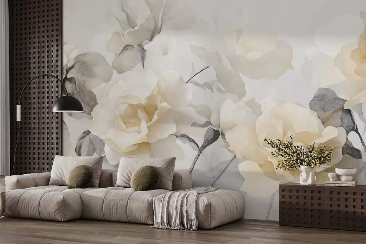 Delicate vintage flowers with texture - Wall mural (No. w09071v2)