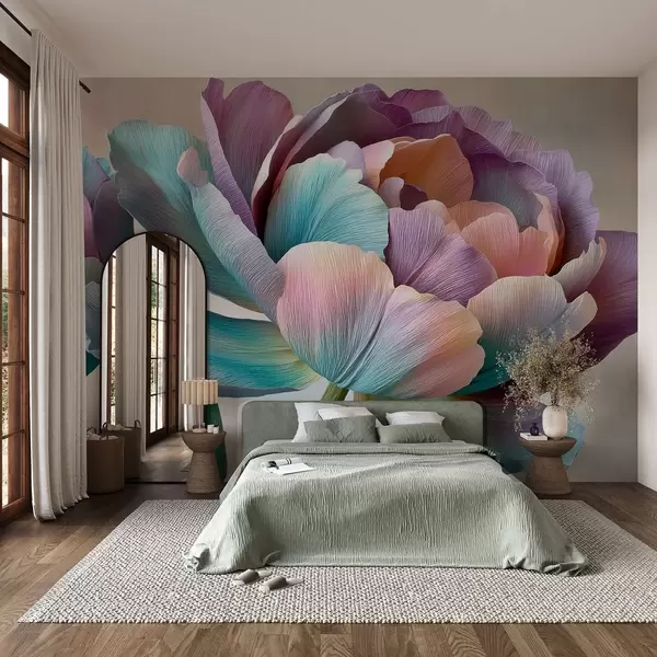 Colorful flower in the style of crepe paper - Wall mural (No. w09076)
